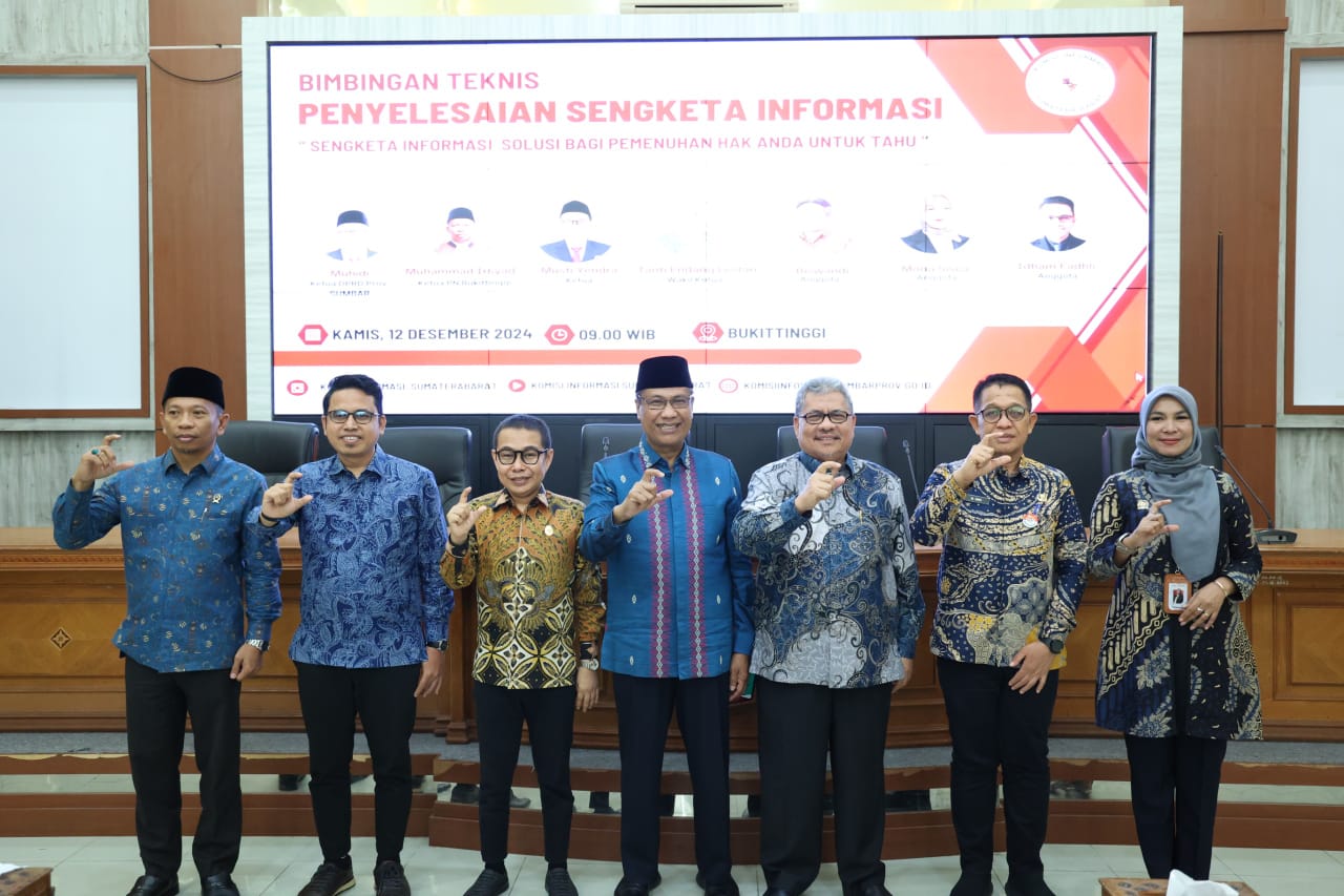 Bukit Tinggi, tbntimes.com – Ketua DPRD Provinsi Sumatera Barat (Sumbar) Muhidi membuka skaligus menjadi narasumber bimbingan teknis (Bimtek) penyelesaian sengketa informasi terhadap masyarakat, Kamis (12/12) di Aula Balaikota Bukittinggi.