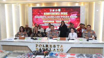 Batam, tbntimes.com – Polda Kepri melalui Tim Subdit 3 Jatanras Ditreskrimum Polda Kepulauan Riau berhasil mengungkap tindak pidana pencurian dengan pemberatan (curanmor) serta tindak pidana pertolongan jahat/penadahan yang terjadi di wilayah Kota Batam dan Kabupaten Karimun, Pengungkapan kasus tersebut dipimpin langsung oleh Dirreskrimum Polda Kepulauan Riau Ronni Bonic, S.H., S.I.K., M.H., serta didampingi Kabid Humas Polda Kepulauan Riau Nona Pricillia Ohei, S.I.K., S.H., M.H.